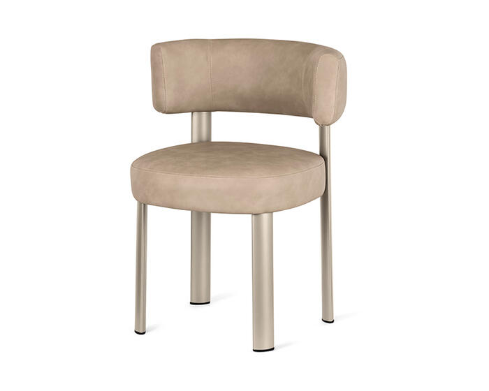 The Glen chair features a minimalist design. Lines and volumes provide it with a bold character and create a visual balance between solidity and lightness. The pure, geometric shape gives rise to a curved seat and backrest, the distinguishing feature of the design. Its wrap-around shape adds a harmonious look to the chair and provides ergonomic support, adapting to the natural posture of the body.