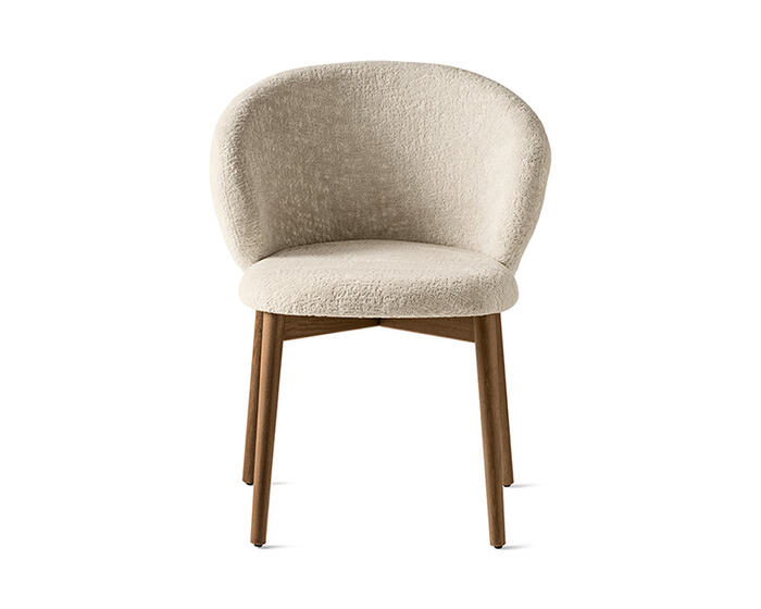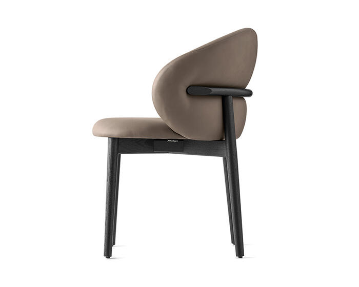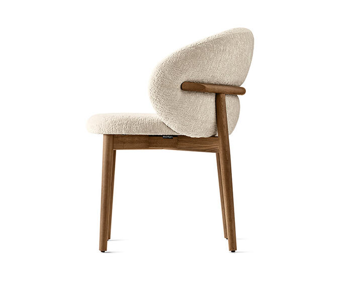 The full-back OLEANDRO chair pairs solid wood craftsmanship with generous, wraparound comfort. Its fully padded seat and backrest offer a soft, supportive feel, while the refined detail at the top of the wooden frame adds a subtle design touch. With a wide range of upholstery options, it’s a versatile piece that brings warmth and poise to any dining setting.