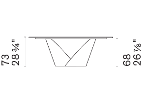 A prominent table, designed to be the centrepiece in the contemporary living space. Calla features a base that resembles a flower – robust yet light, it consists of two metal blades which, as petals do, interlock, creating a chalice shape that opens out upwards, alluding to vitality and rebirth.