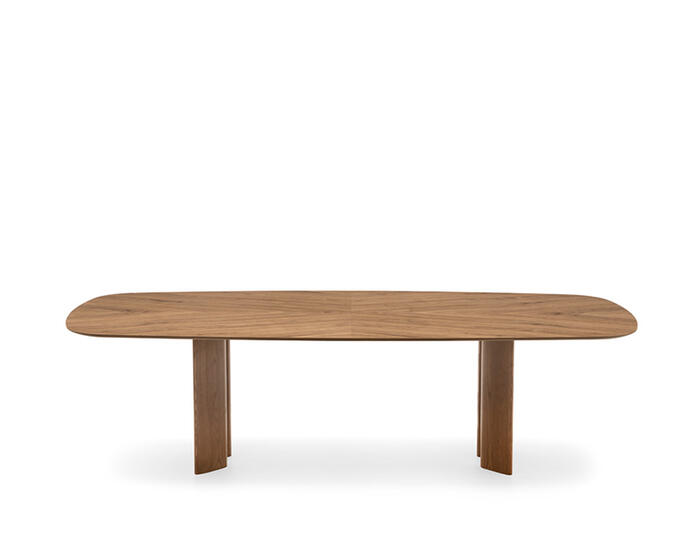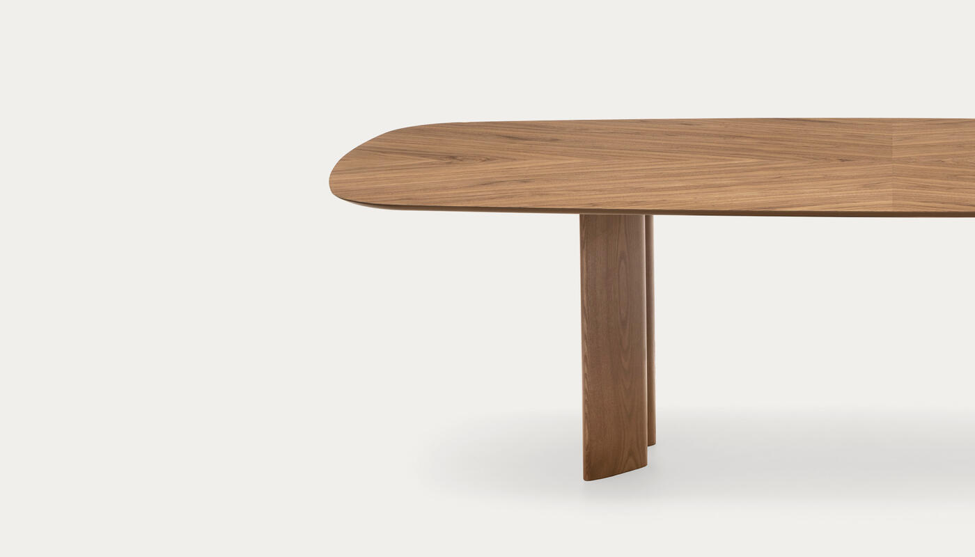Sandy is a collection of tables that feature a teardrop leg, a cross-section with a sophisticated design that can accommodate different table top geometries – rectangular, round or oval, both fixed and extendable.