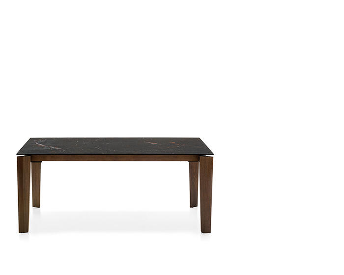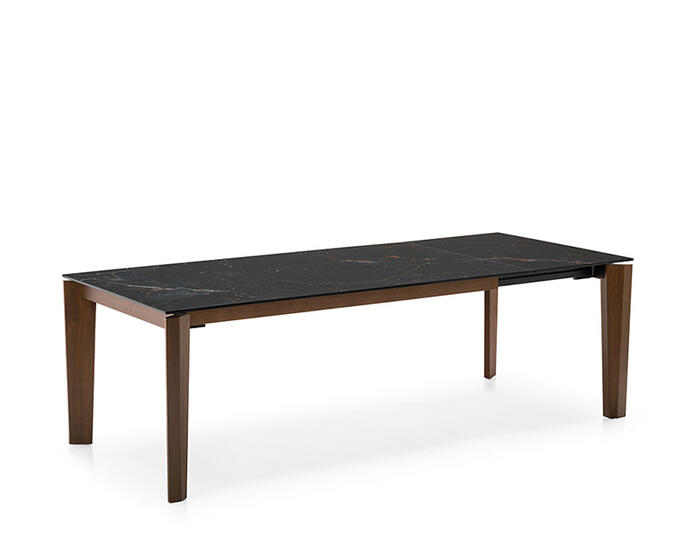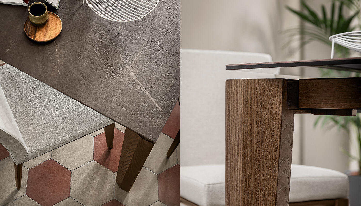 The ALPHA extendable table embodies the concept of smart, elegant, and versatile furniture, perfectly suited for the dynamic needs of a vibrant home, enhancing daily living with simplicity and enjoyment. Its design versatility shines through a harmonious blend of wooden legs and a selection of multiple ceramic tabletop options.