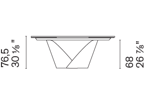 A prominent table, designed to be the centrepiece in the contemporary living space. Calla features a base that resembles a flower – robust yet light, it consists of two metal blades which, as petals do, interlock, creating a chalice shape that opens out upwards, alluding to vitality and rebirth.