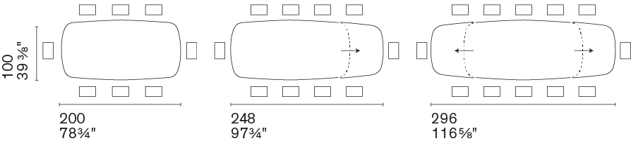 W 200(248)(296) x D 100 x H 76.5(68) cm.