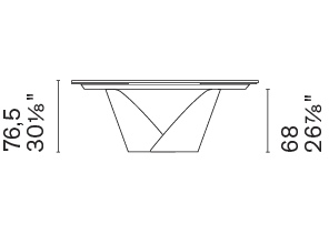 A prominent table, designed to be the centrepiece in the contemporary living space. Calla features a base that resembles a flower – robust yet light, it consists of two metal blades which, as petals do, interlock, creating a chalice shape that opens out upwards, alluding to vitality and rebirth.