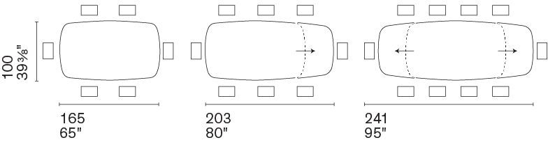 W 165(203)(241) x D 100 x H 76.5(68) cm.