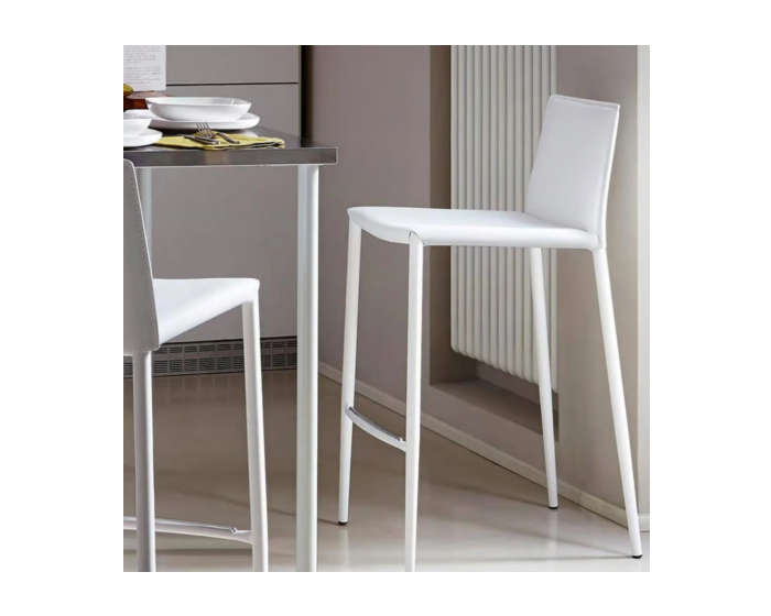17"W x 23"D x 36"H (SH 26") Aida counter stool with White metal legs and White reg. leather -- On display in Georgetown
