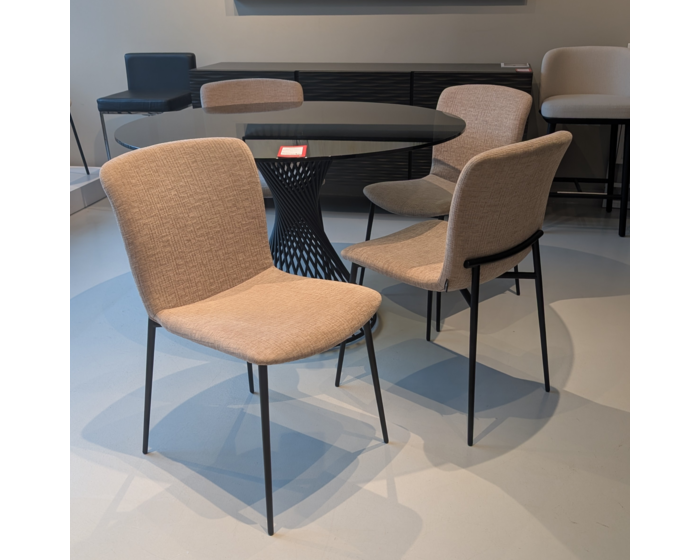 19"W x 22D x 33H (SH 18.5") Love chair with black legs and Lille Sand seat. Set of 4 -- On display in Georgetown.
