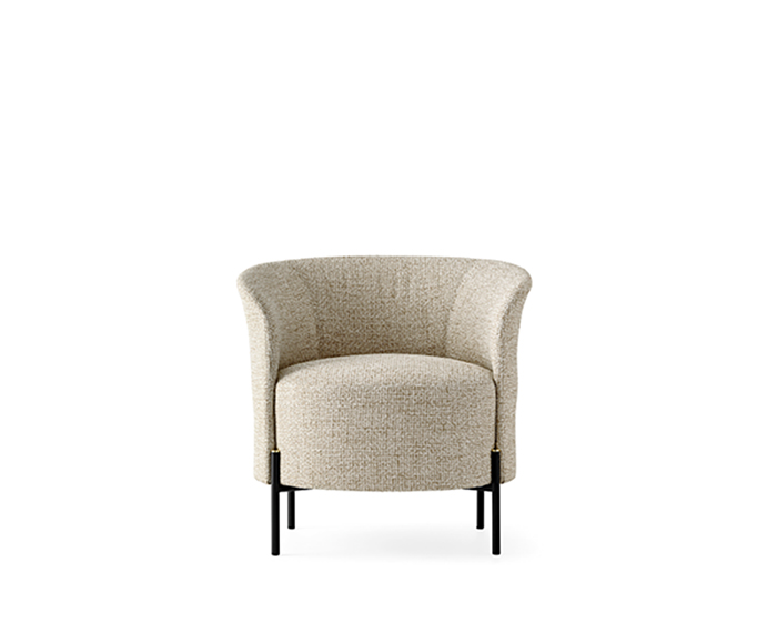 Rendez-Vous is a lounge chair designed for close conversation and quiet elegance. Its compact form is defined by a slender, curved backrest that recalls the shape of a calla lily, gently embracing a generously padded seat. The balance between lightness and volume gives the chair a poised, harmonious presence.