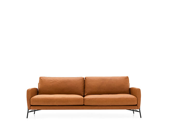 Le Marais is a sofa defined by fluid, feminine lines and a sense of effortless movement. Slender metal feet lift the structure lightly from the floor, extending upward to support seats and backrests distinguished by their soft, elastic cushioning. The result is a design that feels dynamic yet composed, refined without formality.