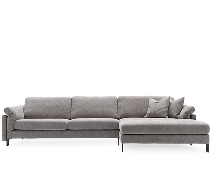 Generous seat cushions double as backrests, while folded armrest cushions provide comfortable head support, inviting moments of quiet relaxation. Available in a range of configurations—including fixed versions, central elements in different sizes, chaise longue, ottoman, and open-end—Meridien adapts gracefully to both classic and contemporary living spaces.