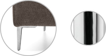 - Headrest adjustable in six positions with manual mechanism and chromed steel structure.
