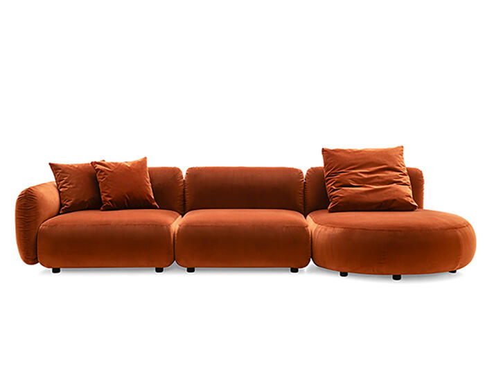 Ginza is a modular sofa system shaped by softness and movement. Inspired by the rounded, organic forms of 1970s design, its padded volumes create a landscape of gentle curves and inviting depth. Each element shares the same flowing language, allowing compositions to feel cohesive even as they change in scale and direction.