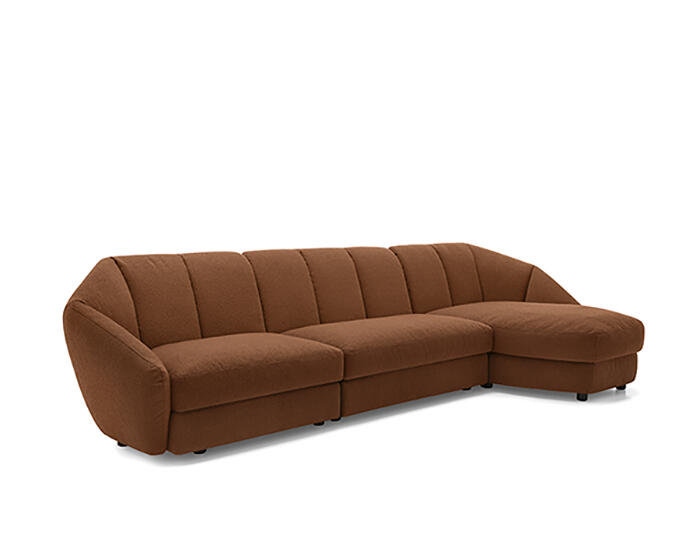 Jill reinterprets the spirit of the 1970s through a contemporary lens, shaping comfort into a single, continuous gesture. Soft padding gives volume to the backrest and armrests, which flow seamlessly into one another to create an enveloping, cohesive form. The result is a sofa that feels warm, relaxed, and intuitively welcoming.